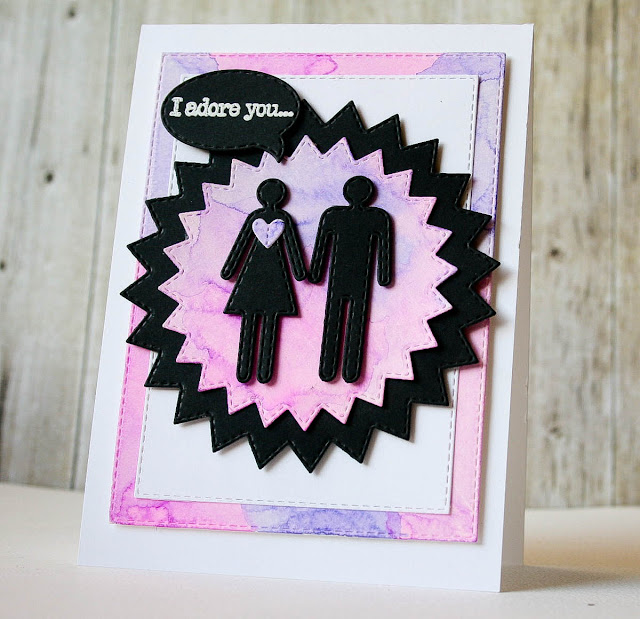 OMG and WOW!!! Your card is simply Beautiful and precious. Love your watercolor backgrounds and how you used the new die so cool. Love how you used the restroom peeps with the speech bubble and your embossed sentiment really pops.
